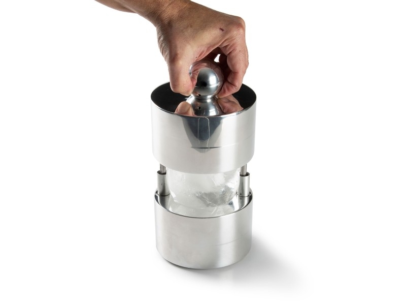 Prensa de aluminio macizo para producir bolas de hielo perfectas a partir de un bloque de hielo transparente. Debe seleccionar el diámetro que necesite según el tamaño de la bola que quiera fabricar.