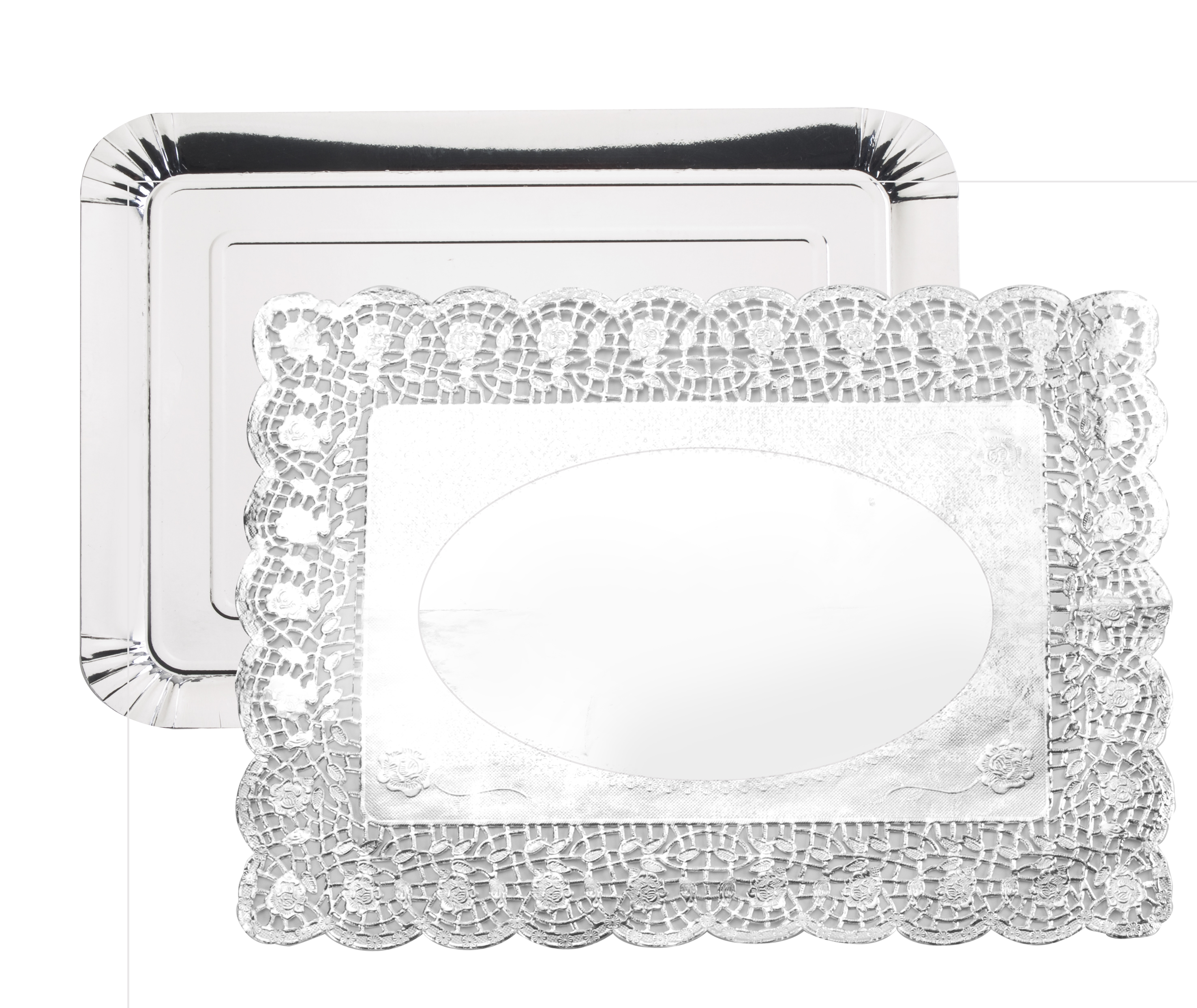 Al tener ese tono plateado, ofrecerá mucha más distinción y elegancia a la presentación de tus creaciones. No es lo mismo un color neutro, que un tono plateado, ligado a uno de los metales más preciosos de la Tierra. El pack se completa con tres bandejas y tres blondas, cada una con este tono tan sofisticado. La bandeja posee los bordes redondeados, para no caer en la dureza de las puntas y las líneas totalmente rectas. Algo parecido pasa con las blondas, las cuales poseen un bonito acabado en los bordes que vestirán, de la cabeza a los pies, tus presentaciones.