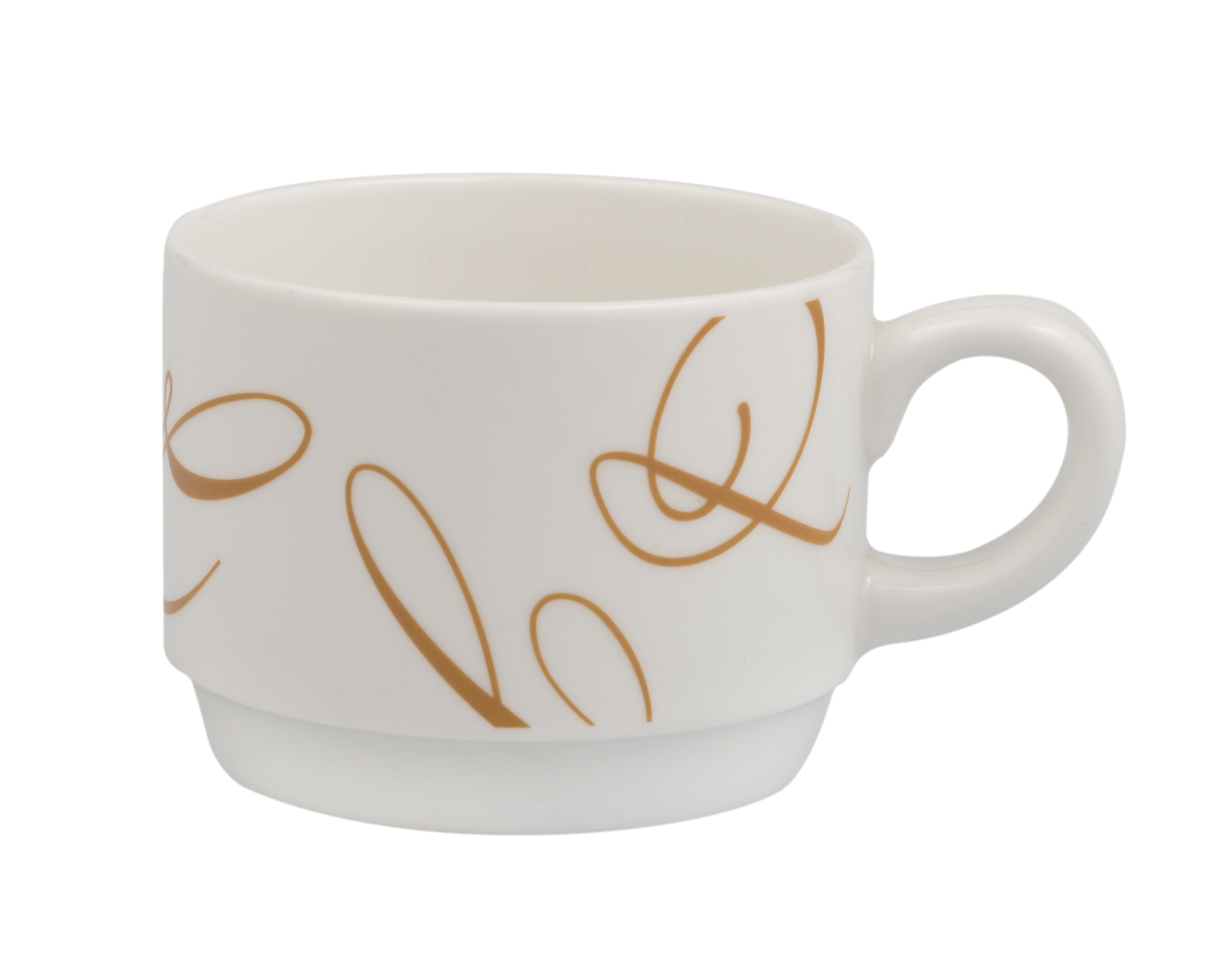 Taza de té porcelana Blanco decorado Swirl Ocre Duoma Alcalá 22 cl. B'GHEST 01170185 (6 unidades)