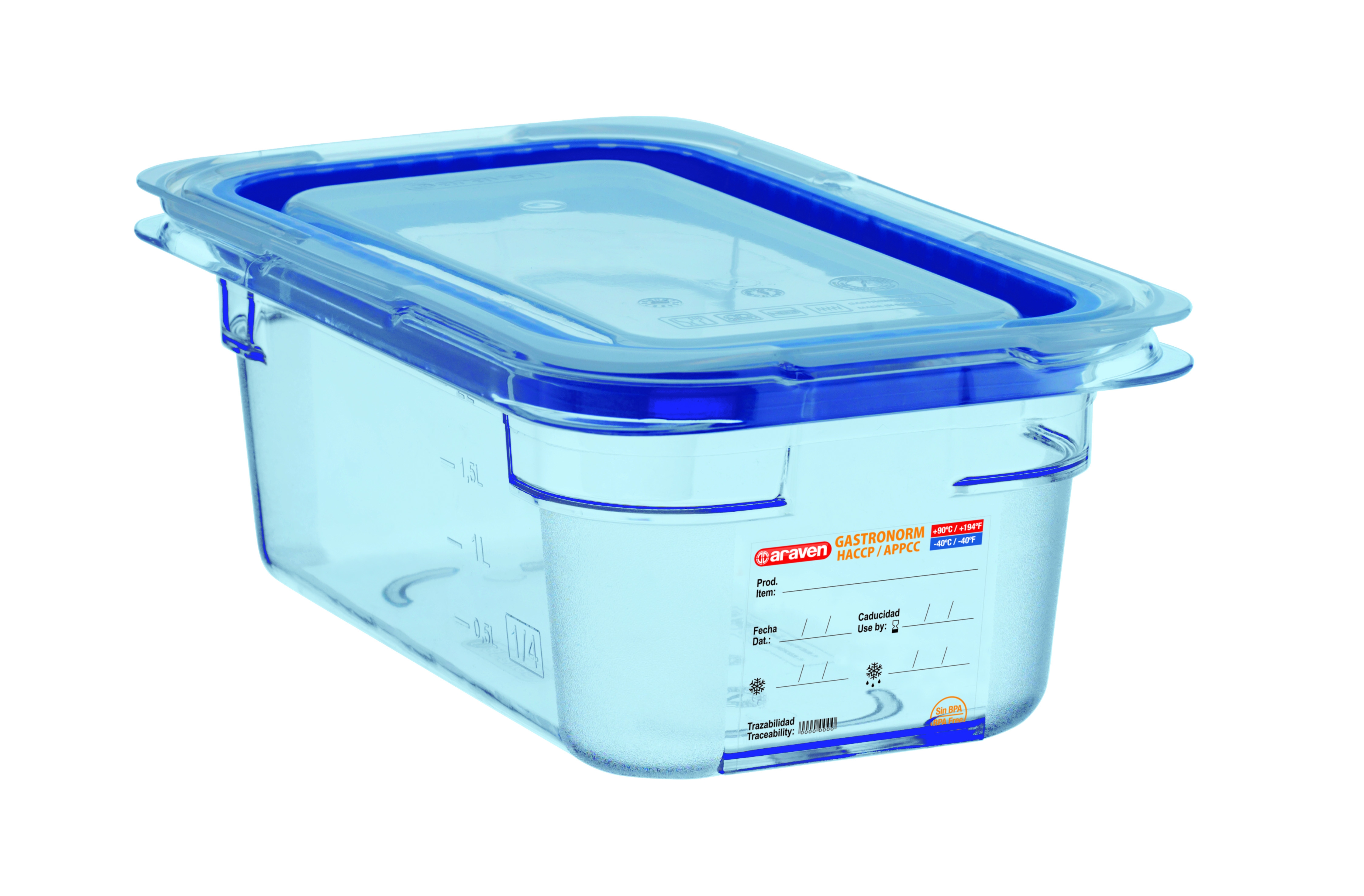 Hermético de ABS Sin BPA GN 1/4 (265x162 mm) Altura 10 mm. 2,2. Araven 07768