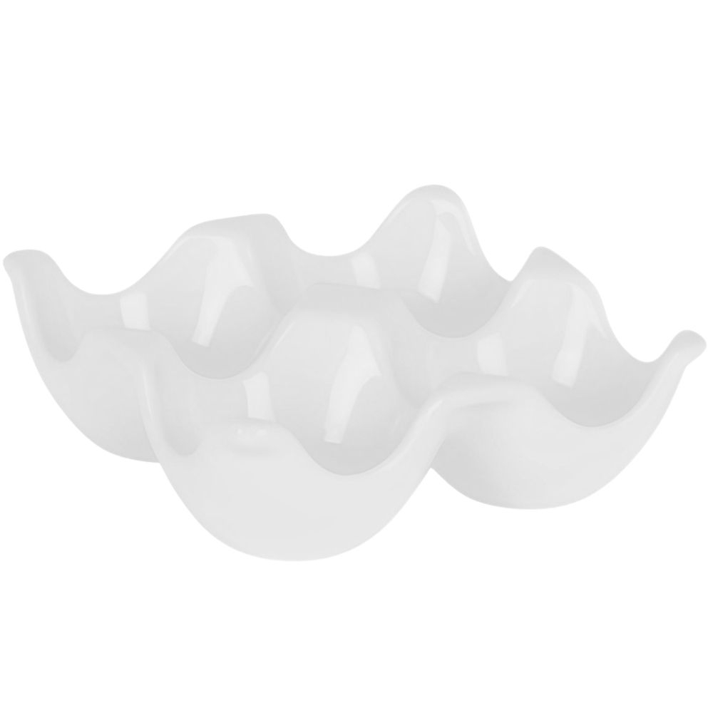 Bandeja huevera de porcelana blanca, con 4 compartimentos redondos. Ideal para presentaciones elegantes en hostelería.