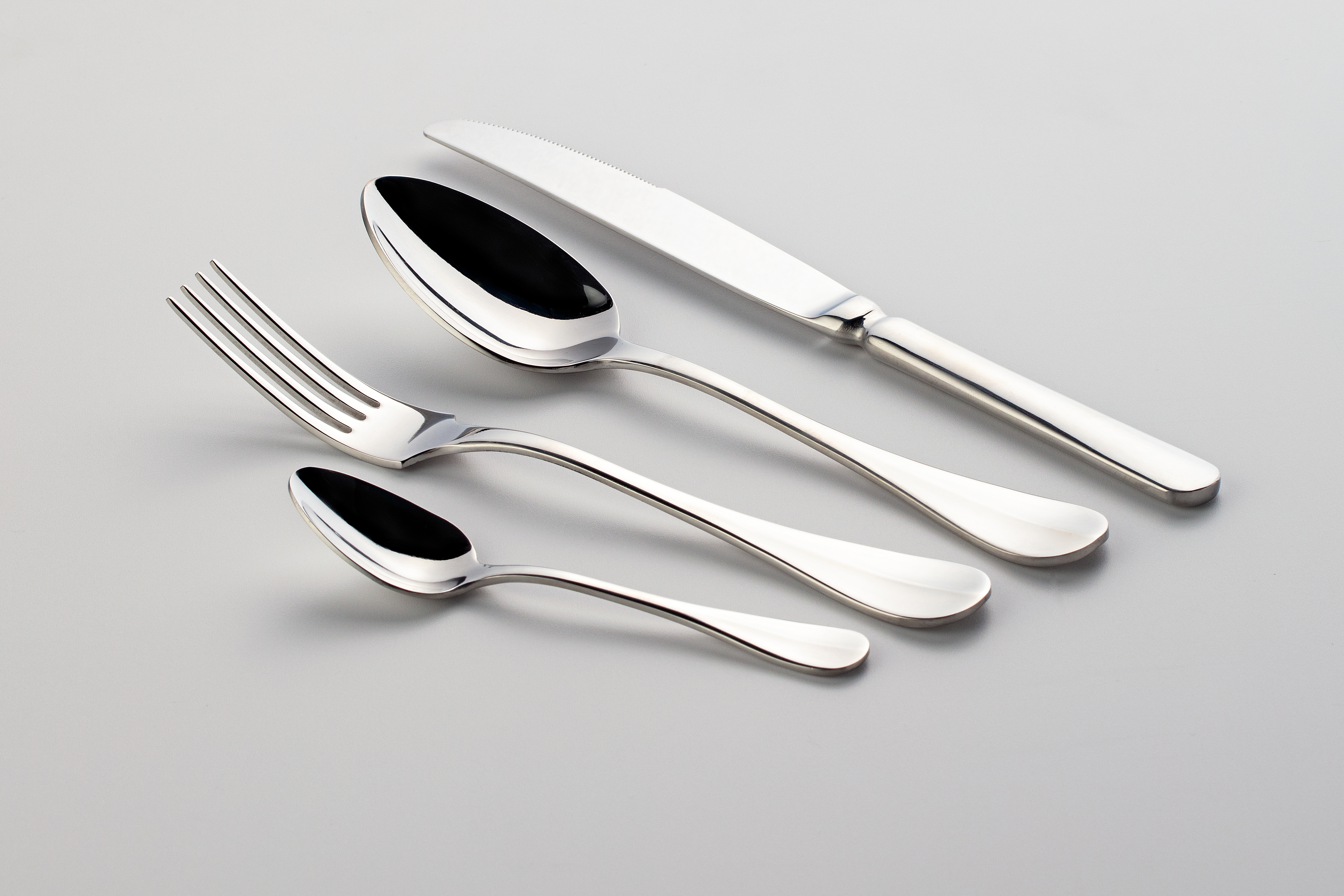 Cubertería de formas rectas y cantos redondeados, similar al Finity pero más robusto.
