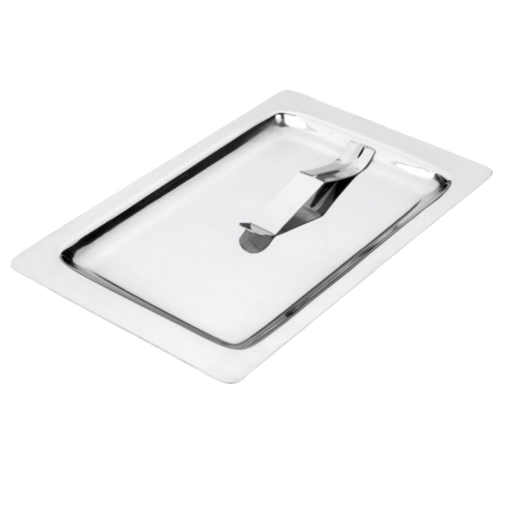 Platillo de cambio pequeño en acero inoxidable con clip, 15,5 x 11 cm. Elegante, resistente y práctico para facturas y cobros en hostelería.