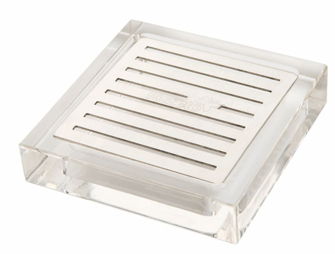 Bandeja de goteo cuadrada de acero inoxidable y acrílico, ideal para dispensadores de bebidas Rosseto.