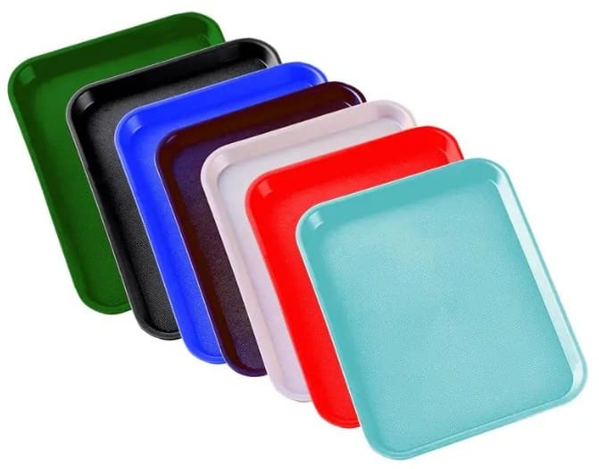 Bandeja fast food en color verde de 35 x 27 cm, fabricada en polipropileno resistente, ideal para autoservicio y restauración.