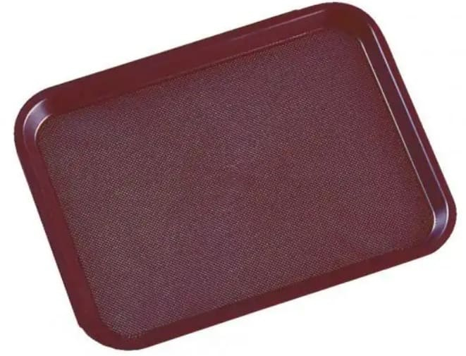 Bandeja fast food en color marrón de 41.6 x 30.5 cm, fabricada en polipropileno resistente, ideal para buffet y autoservicio.