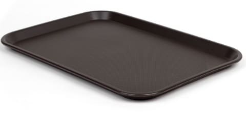 Bandeja fast food en color marrón de 45.8 x 35.5 cm, fabricada en polipropileno resistente, ideal para buffet y autoservicio.