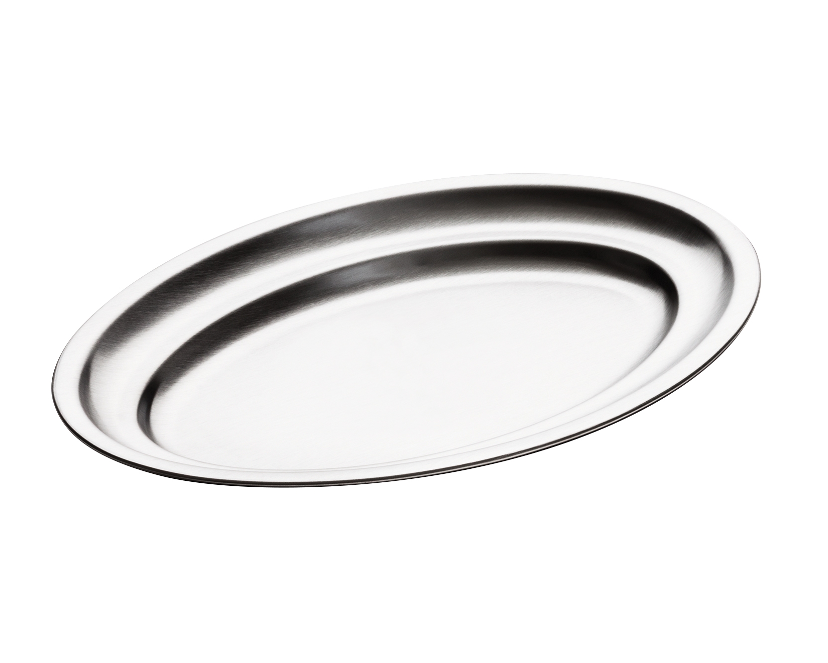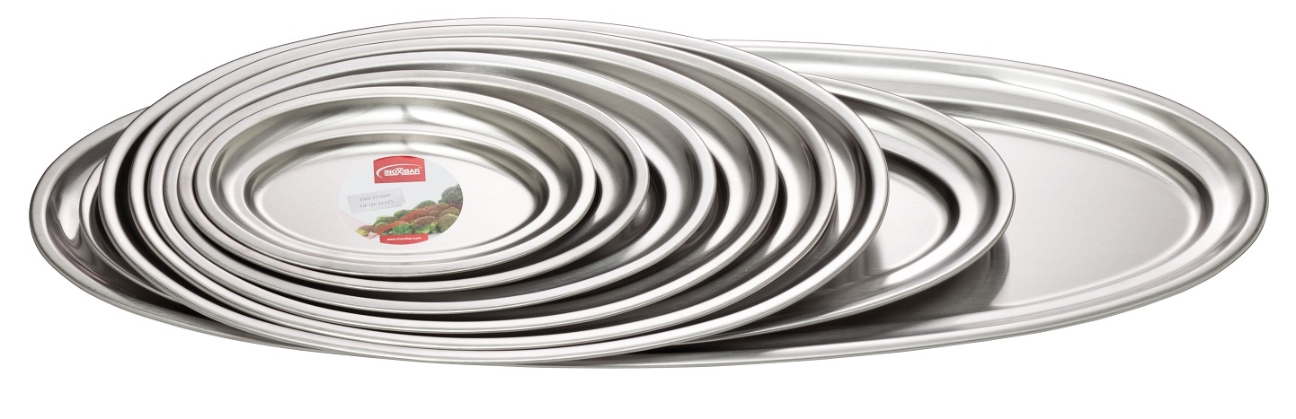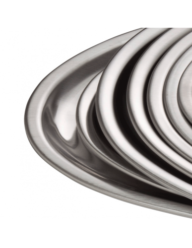 Bandeja oval KAFFEEHAUS de acero inoxidable 18/8 con acabado pulido efecto satinado, pensada para un servicio de cafetería limpio y profesional.