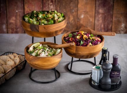 Bol de madera "ACACIA" de 30x30 cm, ideal para presentar alimentos de manera elegante.