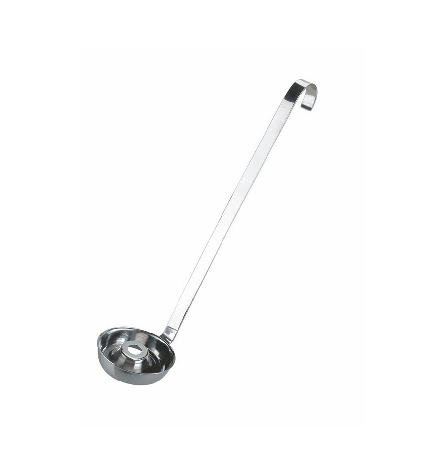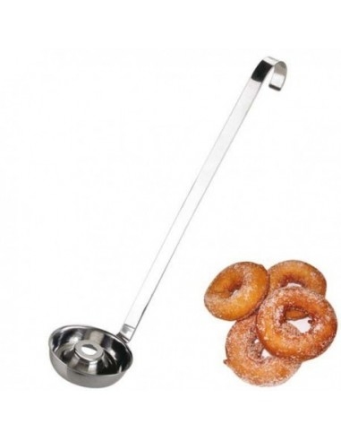 Buñolera de acero inoxidable ideal para colgar debido a su forma.