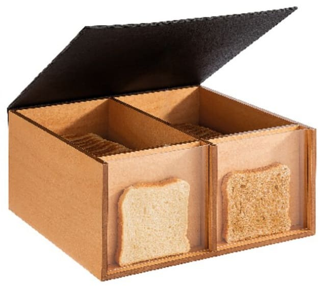 Caja de buffet de 2 secciones en madera de roble, ideal para la presentación de alimentos.