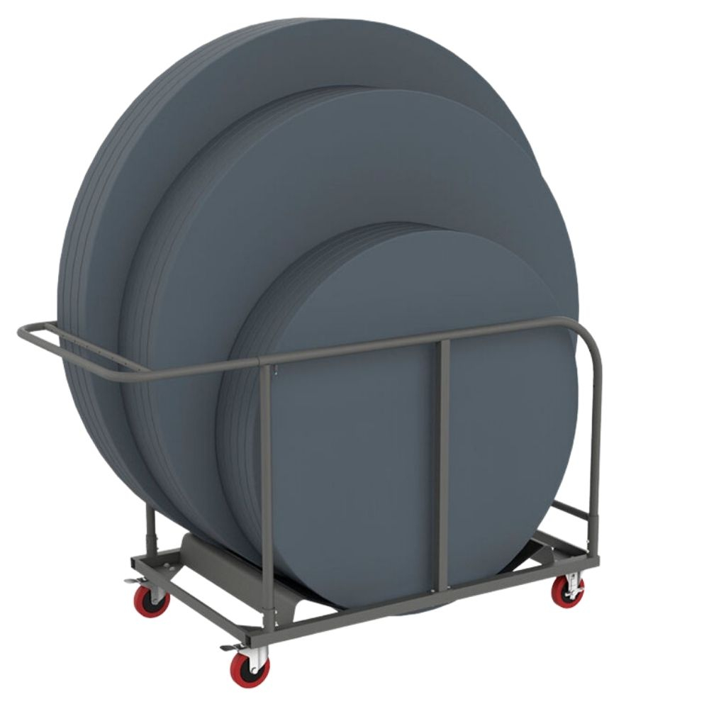 El Zown RA-106A Planettrolley es un carro de transporte diseñado para almacenar y mover mesas redondas de distintos diámetros. Resistente, ajustable y con capacidad de hasta 16 mesas.