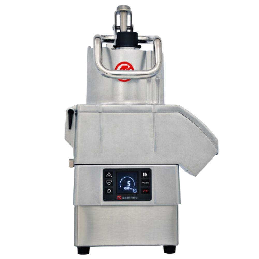 Cortadora de hortalizas Sammic CA-4V con motor de velocidad variable. Producción de hasta 650 kg/h. Incluye cabezal de gran capacidad y limpiador QC-U.