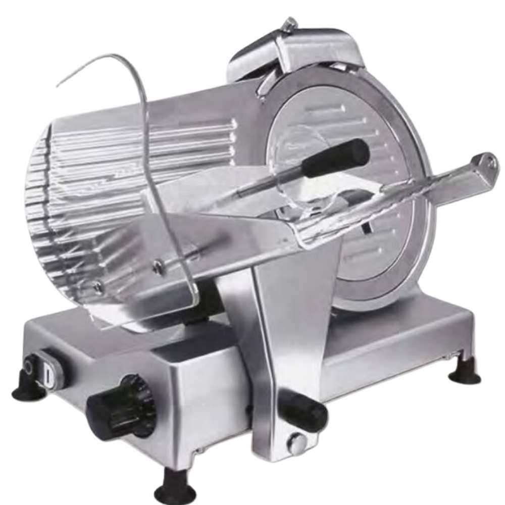 Cortadora de fiambres eléctrica Pujadas con cuchilla de 30 cm y motor de 250 W. Rendimiento continuo y alta precisión para hostelería.