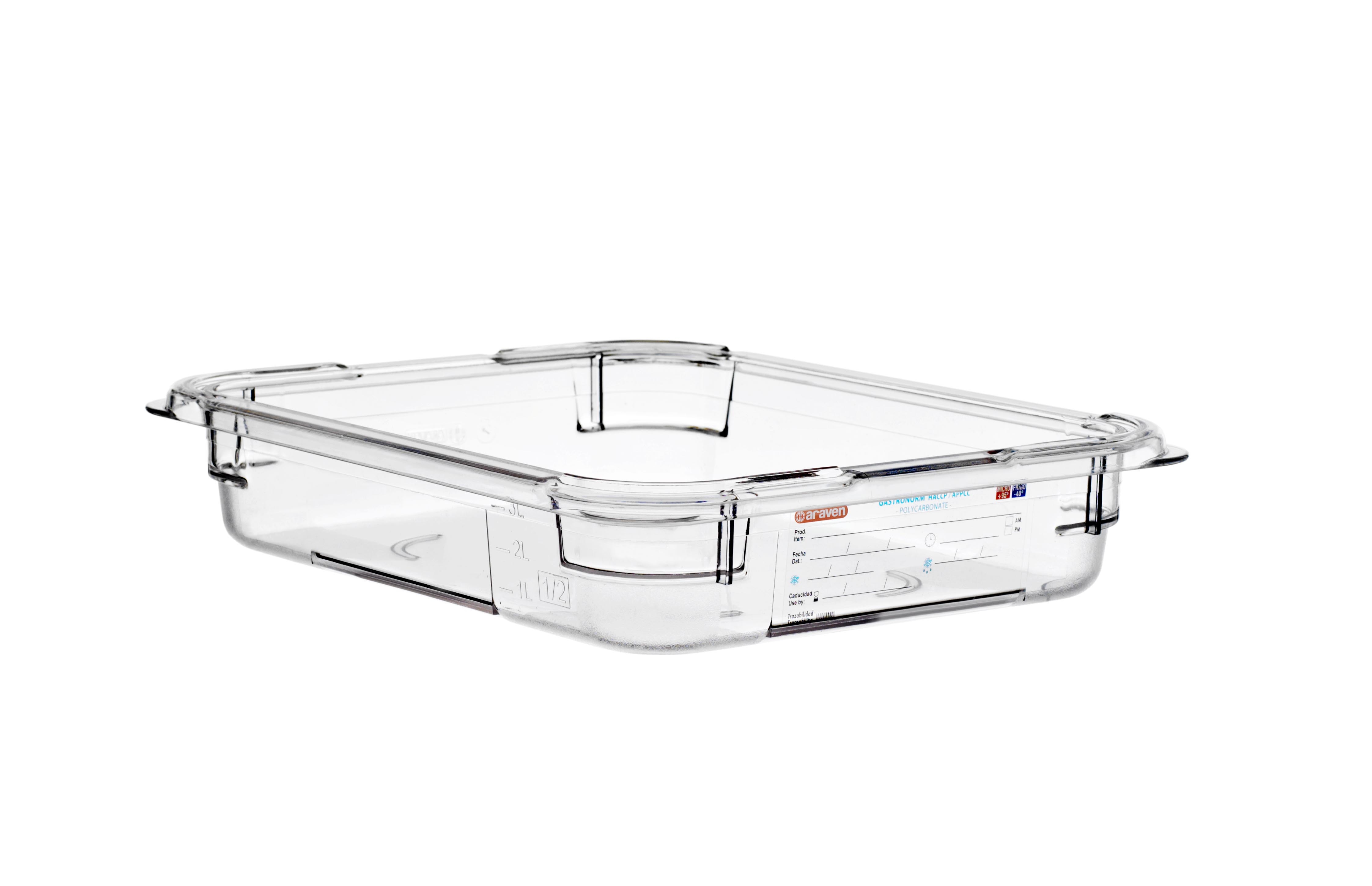 La cubeta de policarbonato GN 1/2 de Araven se destaca como una opción confiable y eficiente para la manipulación y conservación de alimentos en entornos profesionales de cocina.