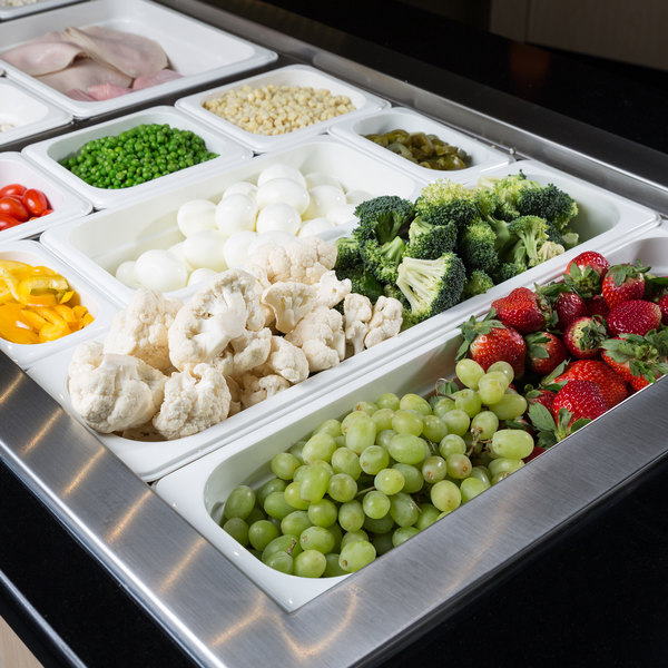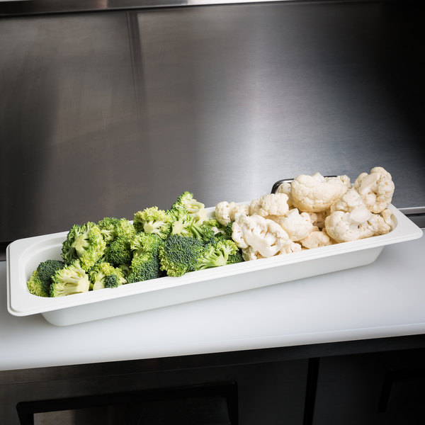 Policarbonato. Apta para lavavajillas. La tapa se vende por separado al igual que el fondo perforado. Accesorios: tapa plana (20LPCWC) y el fondo perforado (20LPCWD) se puede adquirir también por separado.