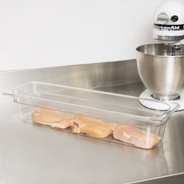 Policarbonato. Apta para lavavajillas. La tapa se vende por separado al igual que el fondo perforado. Accesorios: tapa plana (20LPCWC) y el fondo perforado (20LPCWD) se puede adquirir también por separado.