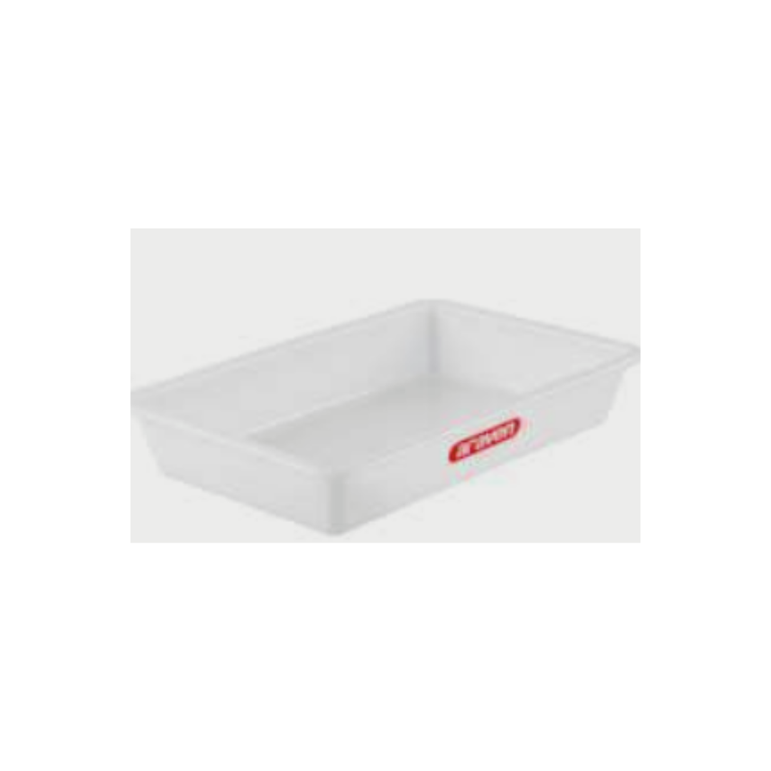 La cubeta sin tapa con dimensiones 435x285x80 mm fabricada en blanco y con una capacidad de 5L.