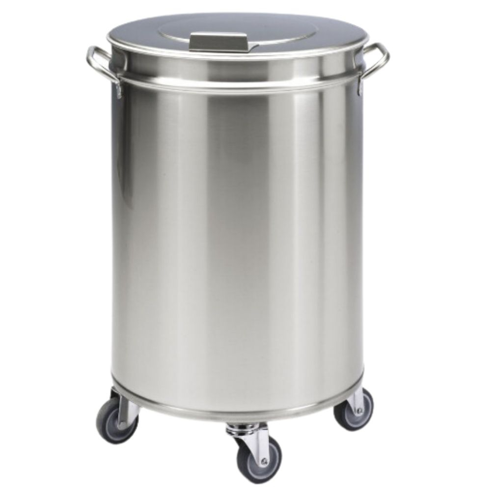 Cubo de 95 L fabricado en acero inoxidable, con 4 ruedas giratorias insonorizadas y asas. Perfecto para gestión de residuos en cocinas profesionales.