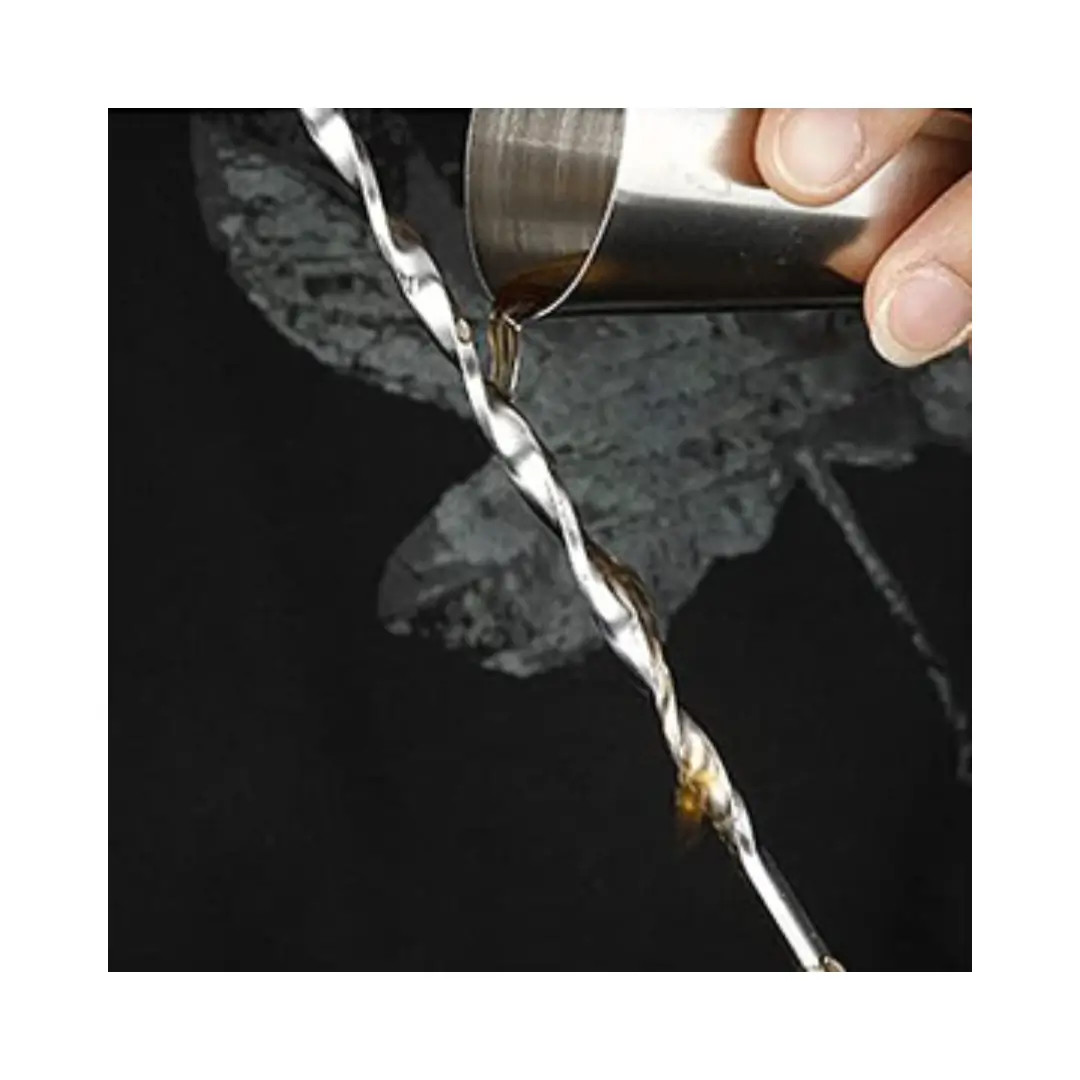 Accesorio de barman profesional utilizado en coctelería para mezclar y preparar cócteles mediante métodos de construcción y lavado, así como para trabajar en vaso mezclador.