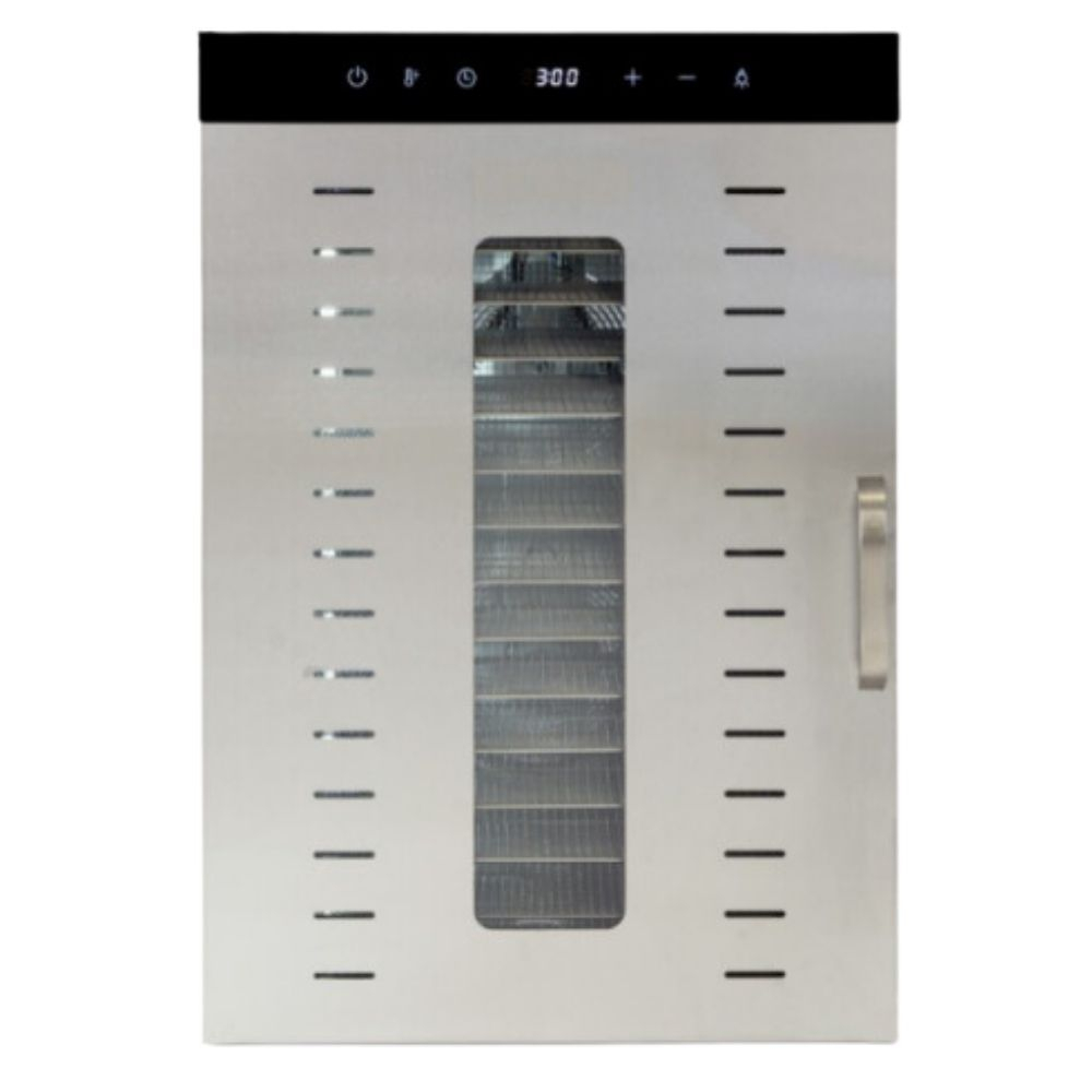 Deshidratador profesional DryCook con 15 bandejas de acero inoxidable, control digital preciso y ventilación horizontal. Ideal para cocinas y pastelerías profesionales.