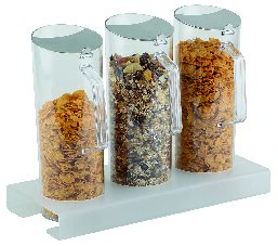 El Dispensador de Cereales APS 11973 es una solución práctica y elegante para mantener tus cereales frescos y accesibles en el buffet. Este set incluye un total de 7 piezas, diseñado para ofrecer máxima versatilidad en la presentación de cereales.