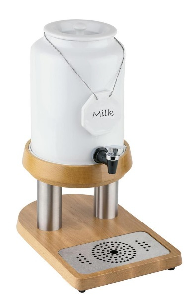 Dispensador de leche "TOP FRESH" de 4 litros, fabricado en madera de haya y acero inoxidable, ideal para buffets.
