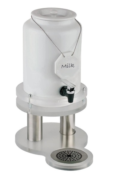 Dispensador de leche "TOP FRESH" con enfriador en la base y cartelito de porcelana, ideal para buffets.