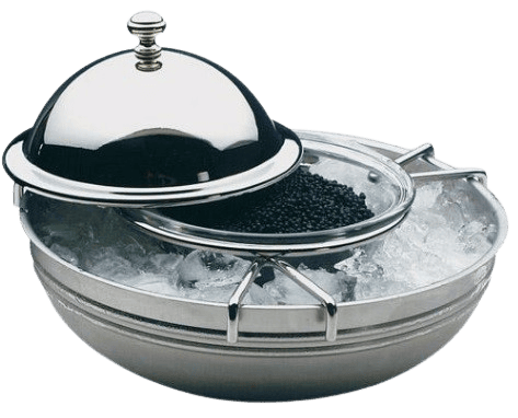 Enfriador de caviar APS en acero inoxidable y cristal, set de 4 piezas, ideal para la presentación elegante y refrigerada de caviar en buffets y eventos.