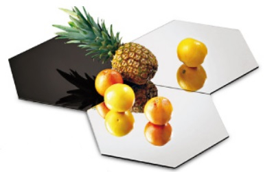 Espejo acrílico hexagonal, diseñado para presentaciones elegantes en buffets y eventos. Versátil, funcional y fácil de limpiar.