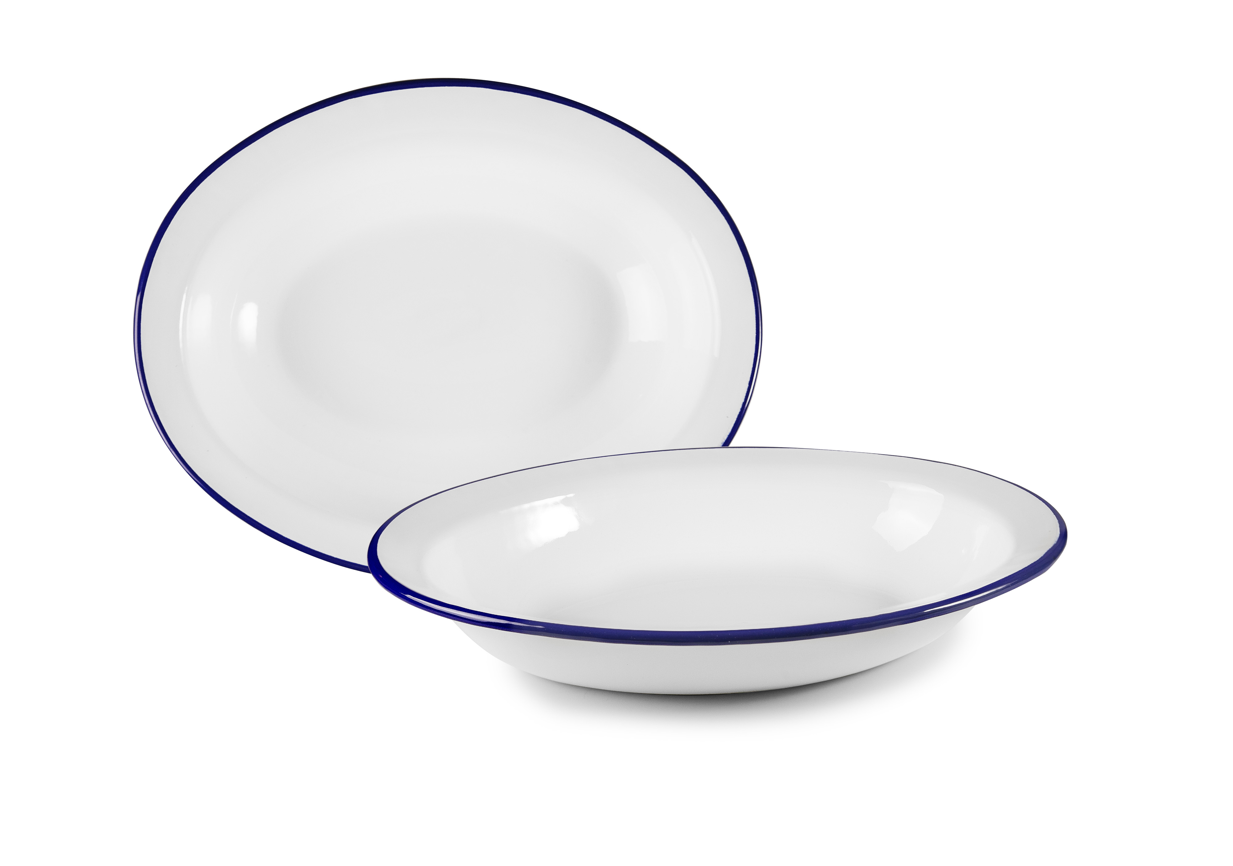 Fuente honda oval acero esmaltado vitrificado Blanco con borde Azul "Vintage Blue"". Dimensiones: 32x25 cm. 905232 IBILI (6 unid