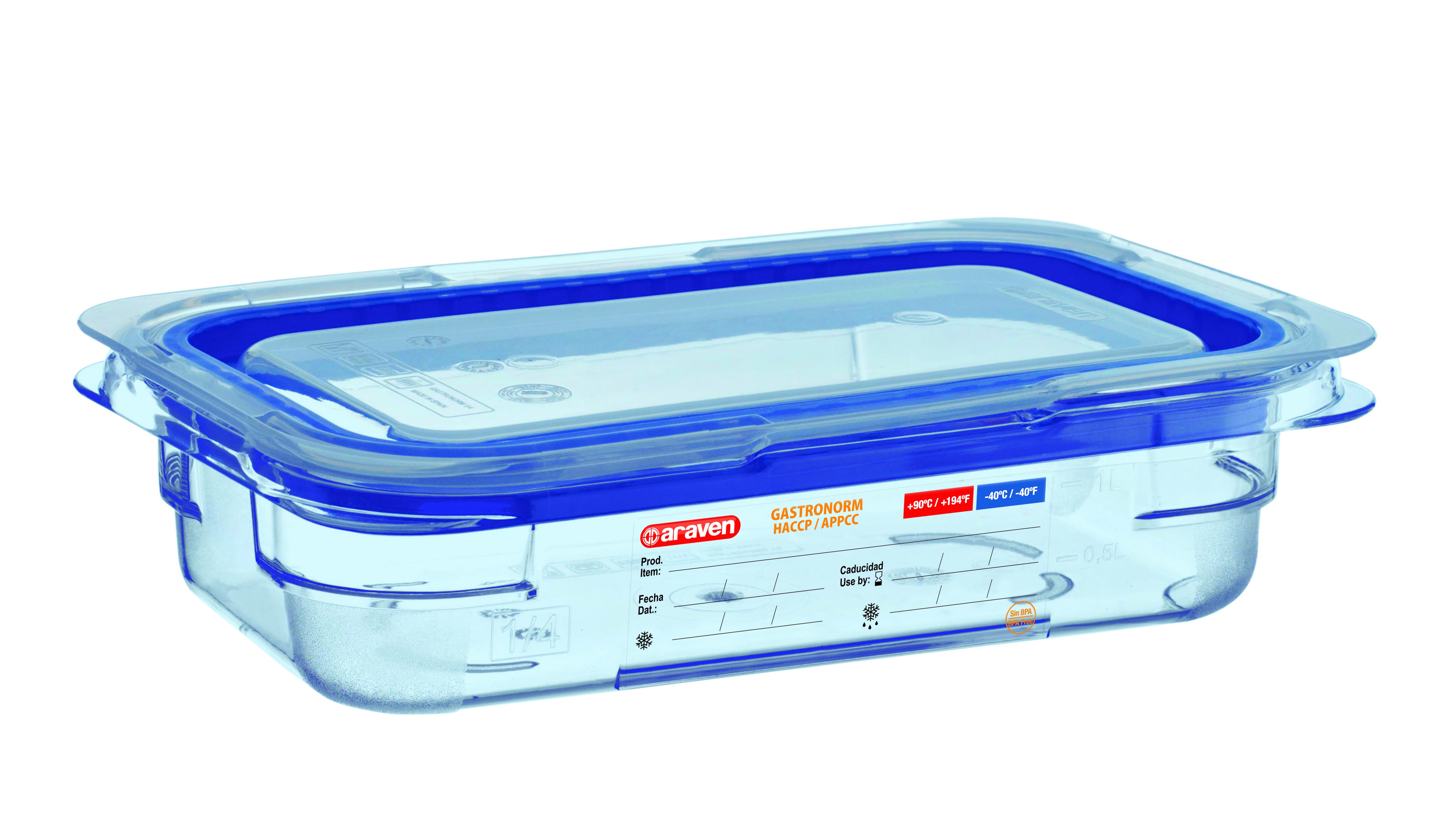 Hermético de ABS Sin BPA GN 1/4 (265x162 mm) Altura 65 mm. 1,2. Araven 07767