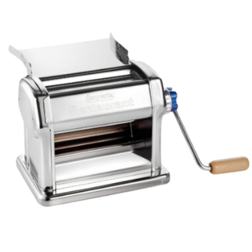 La Máquina Laminadora de Pasta Imperia IFA 0581010, fabricada en Italia, es una herramienta profesional diseñada para cocinas de hostelería y restaurantes que buscan ofrecer pasta fresca de la mejor calidad. Construida con acero cromado y con un meticuloso cuidado artesanal, garantiza una gran robustez y una larga vida útil.