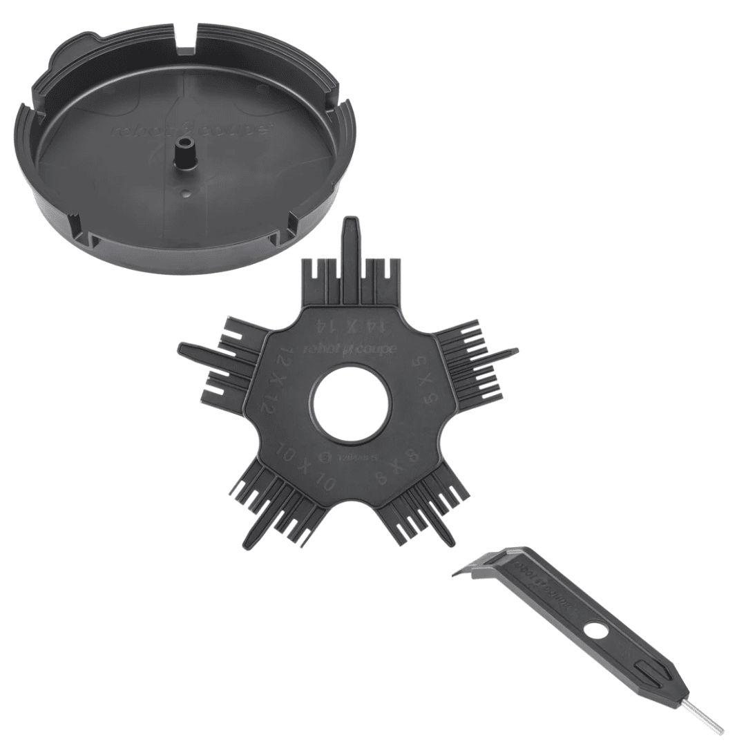 Kit de limpieza D-Clean Kit de Robot Coupé. Diseñado para mantener en óptimas condiciones los discos de corte, incluyendo los de macedonia (también llamados dados), rodajas, rallado y juliana.