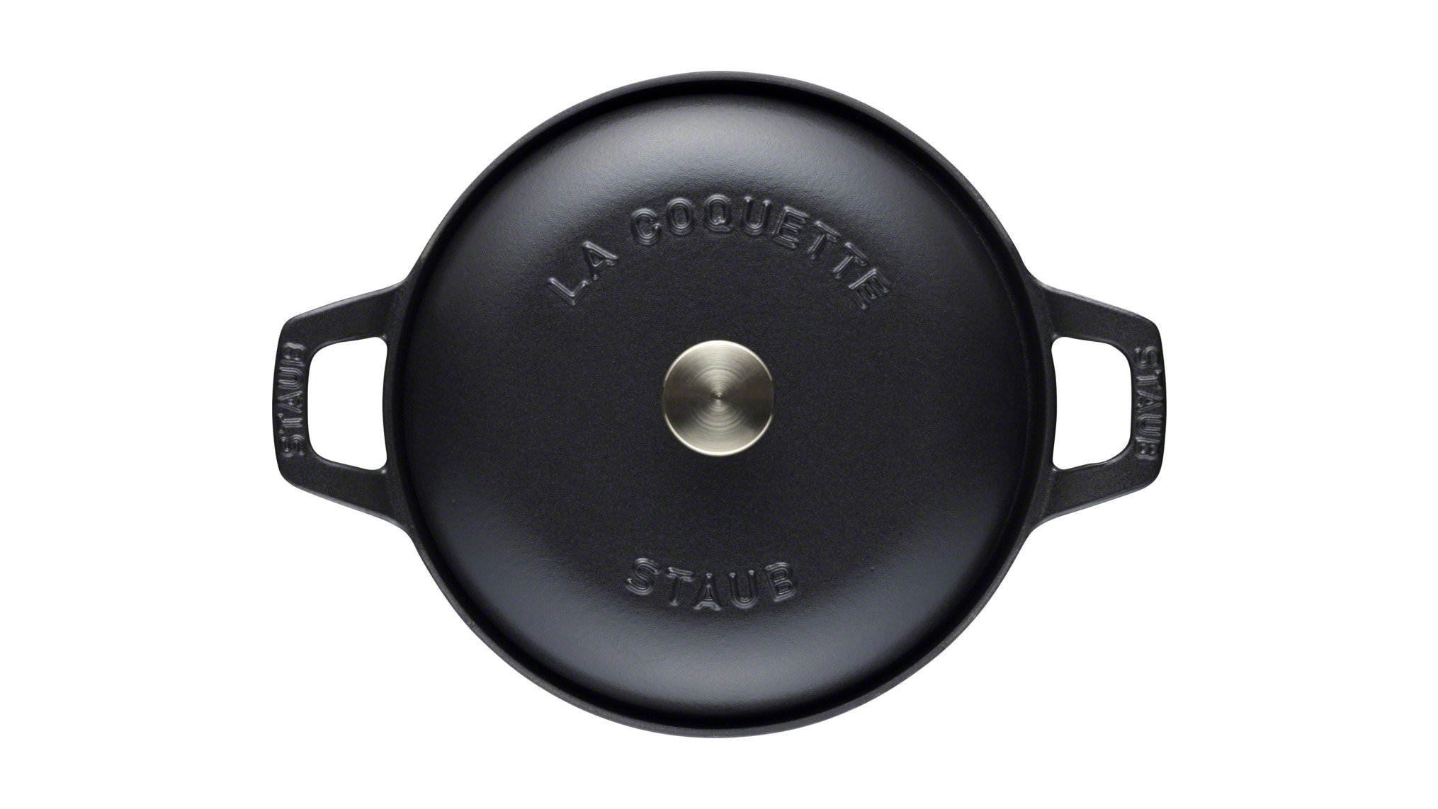 Con un diámetro de 20 cm y una capacidad de 2,45 l esta cazuela ofrece una gran polivalencia. Es apta para todos los tipos de cocina, incluida la inducción y el horno. Su diseño retro atraerá todas las miradas cuando la lleve a la mesa.Las elegantes asas facilitan el manejo de la Cocotte y su forma permite apilar estas pequeñas cazuelas y así ahorrar espacio en la cocina. La tapa y las asas son ligeras lo que disminuye significativamente el peso y facilita el trabajo diario. Su interior negro esmaltado intensifica los aromas y sabores ayudando así a preparar deliciosos platos. Es recomendable curar con aceite este interior para ayudar a sus propiedades antiadherentes.Como todo el hierro colado ha de calentarse progresivamente evitando choques térmicos. De igual modo antes de lavar siempre hay que dejar enfriar.