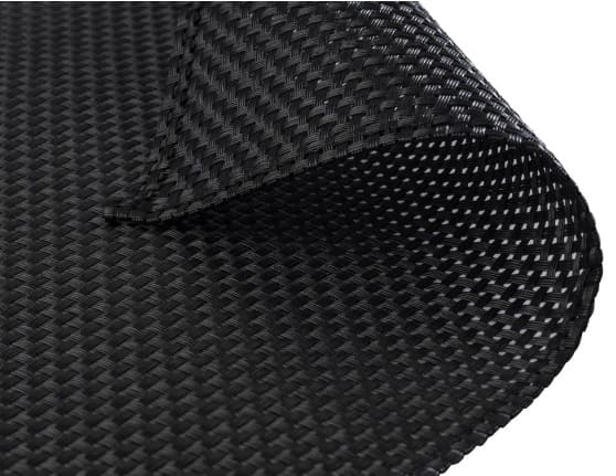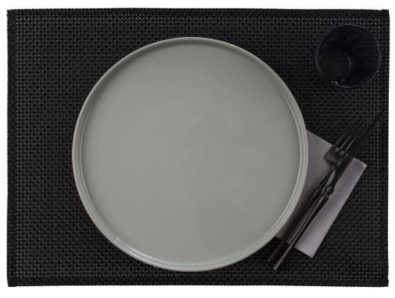Mantel americano negro de PVC con diseño de cinta estrecha. Elegante y funcional, 45x33 cm, pack de 6 unidades.