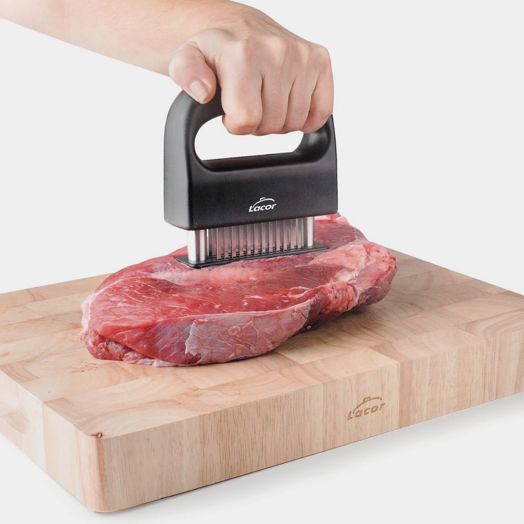 Esta maza ablandacarne de Lacor es ideal para chefs profesionales y aficionados que buscan una herramienta eficiente y duradera para preparar sus cortes de carne, garantizando resultados perfectos en cada uso.