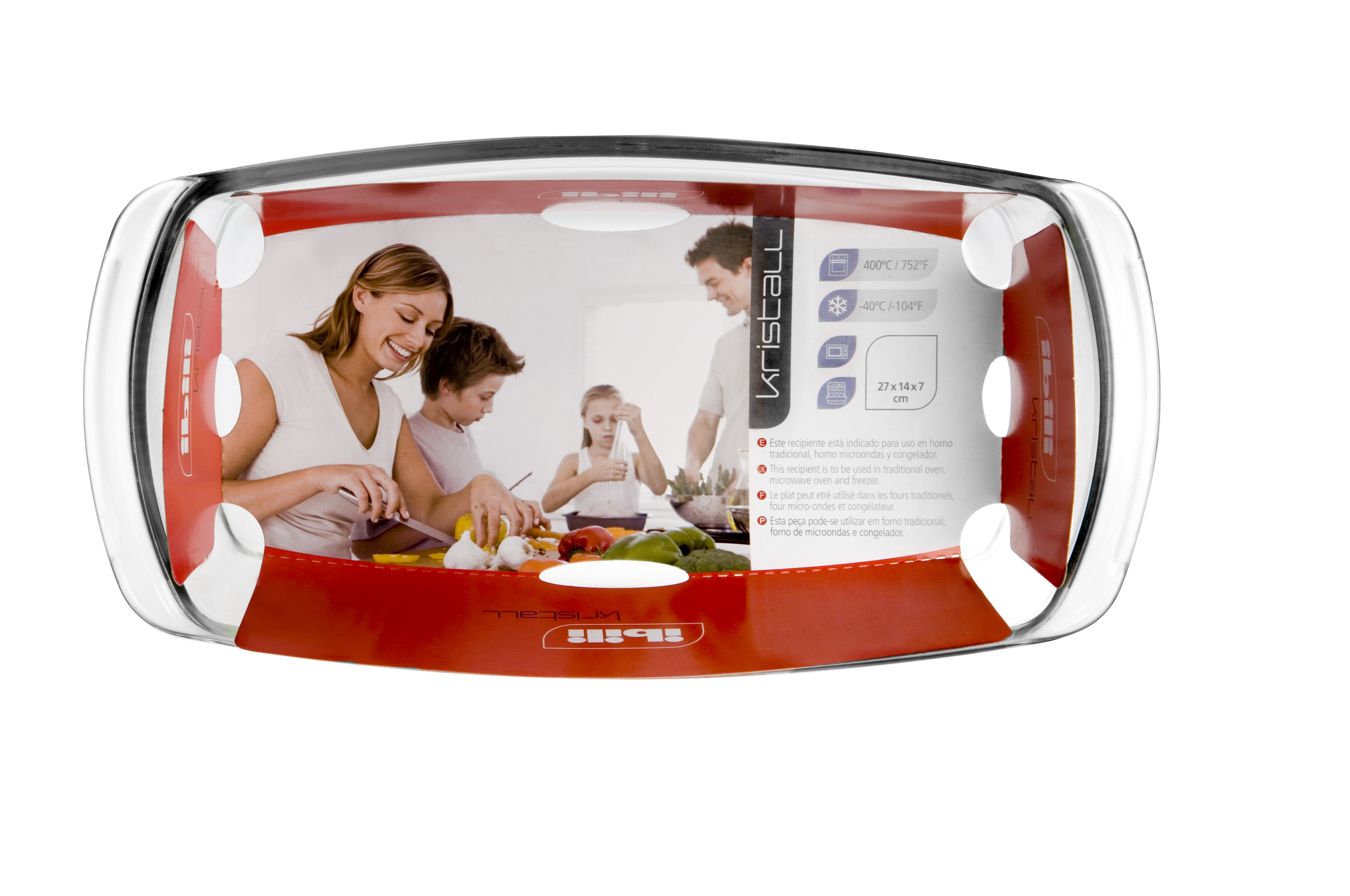 Fabricado en cristal de borosilicato, capaz de soportar temperaturas de 400ºC como máximo y -40ºC de mínimo. Es apto para el horno y el microondas. Además, es refrigerable y se puede lavar en el lavavajillas.