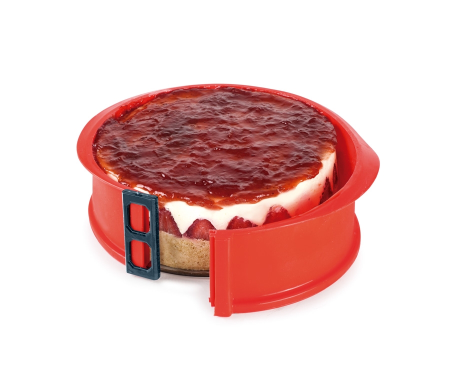 El aro de silicona permite desmoldar la tarta de forma cómoda y rápida con un resultado final perfecto, sobre todo en tartas frías , perfectamente lisas y brillantes.