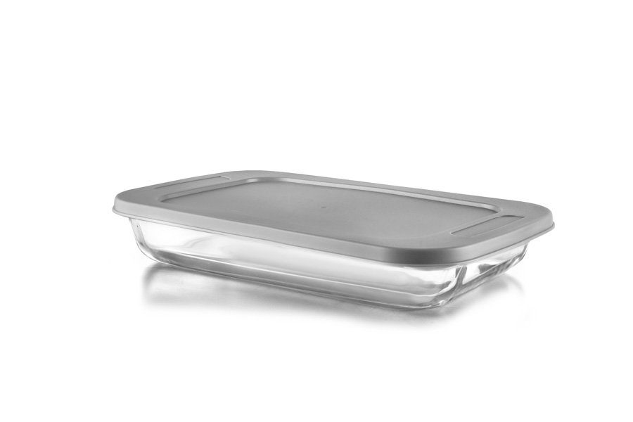 Fabricado en cristal de borosilicato, capaz de soportar temperaturas de 400ºC como máximo y -40ºC de mínimo. Es apto para el horno y el microondas. Además, es refrigerable y se puede lavar en el lavavajillas.