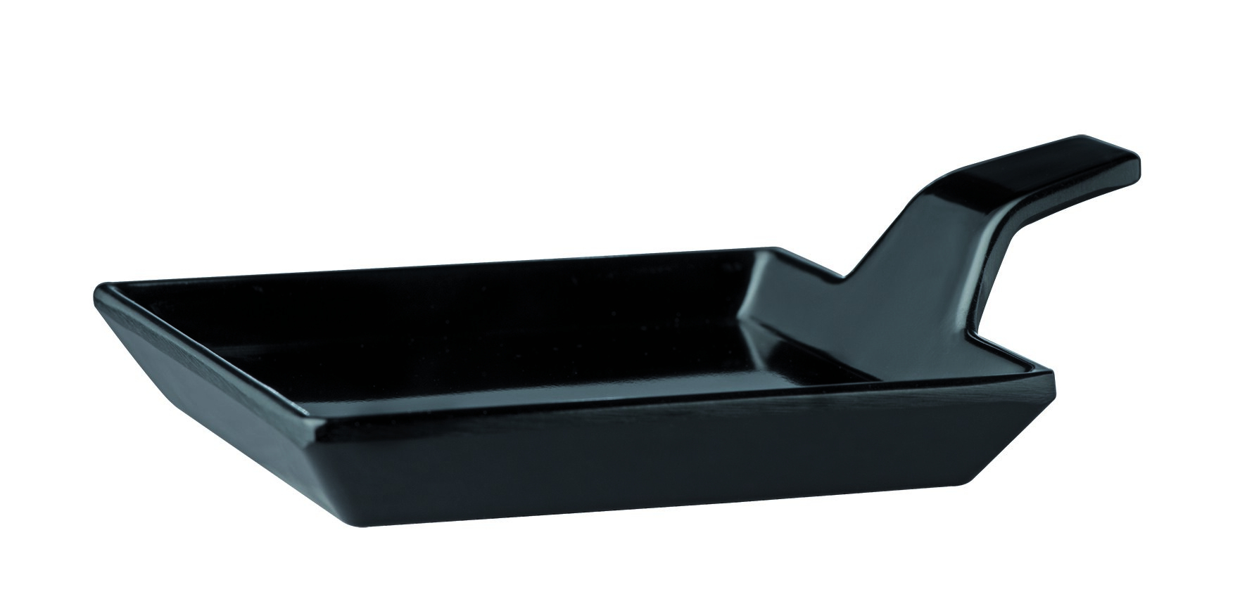 Plato para aperitivo con mango melamina Negro. Dimensiones: 9,5 x 12 cm x3 cm. APS 83879 (6 unidades)