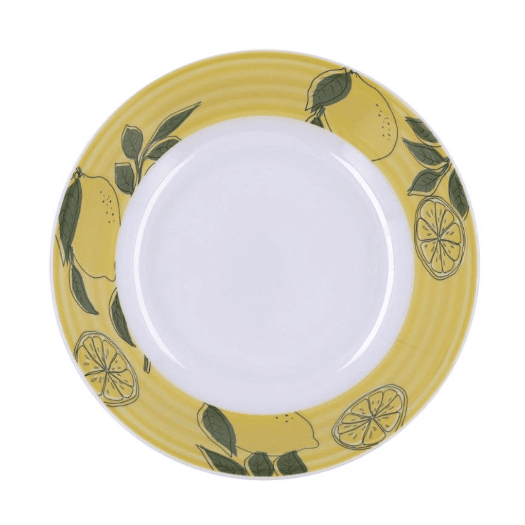 Juego de 12 platos hondos SICILIA Ø20cm de Quid con diseño de limones. Inspirado en la tradición siciliana del limoncello y artesanías de limón. Melamina extra fuerte.
