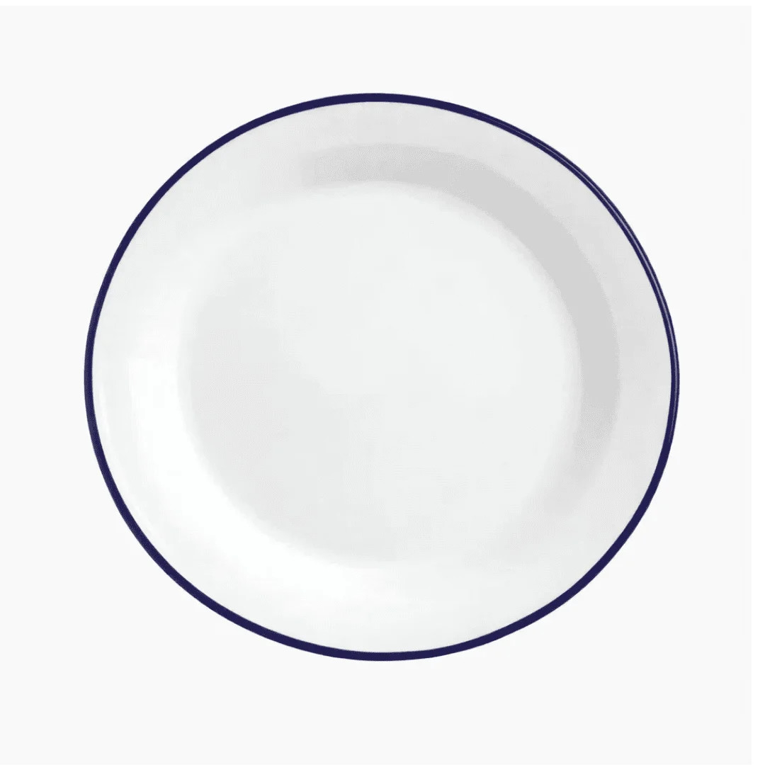 Su diseño en color blanco con borde azul aporta una estética vintage elegante, perfecta para restaurantes, bares y cafeterías que buscan diferenciar la presentación de sus platos.