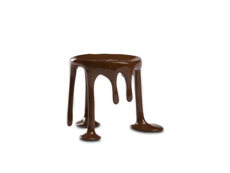 Plato de resina con forma de chocolate fundido. Se puede fabricar en diferentes colores, para replicar el aspecto del chocolate amargo, chocolate blanco, chocolate con leche o stracciatella. Presenta tus postres en un stand de presentación individual personalizado en crema, pistacho, nata, helado de pitufo, fresa y nata... Todas las piezas son únicas, pintadas a mano para un perfecto resultado realista.