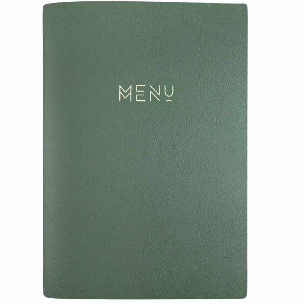 Porta Menú Saura A4 de cuero reciclado, producción artesanal y certificado OEKO-TEX. Resistente, personalizable y perfecto para hostelería profesional.