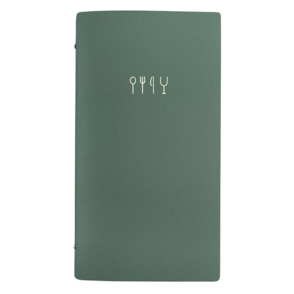 Porta Menú Saura estrecho vertical, ideal para cartas de vinos. Cuero reciclado, artesanal, resistente y personalizable para hostelería.