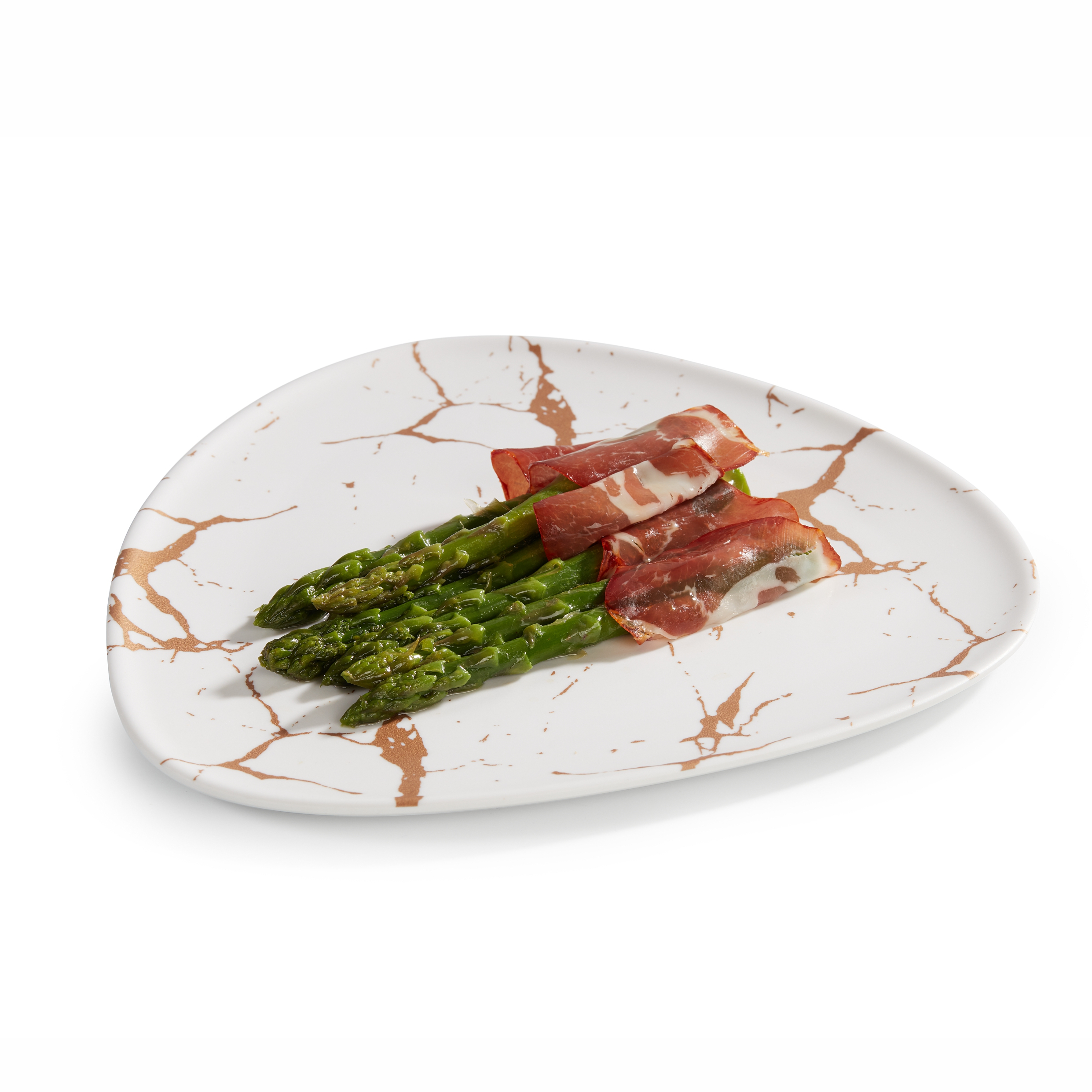 Plato presentación triangular melamina decorado "Golden" Dimensiones: Ø 29x26,5 cm, altura 3 cm. PUJADAS P22347 (1 unidad)