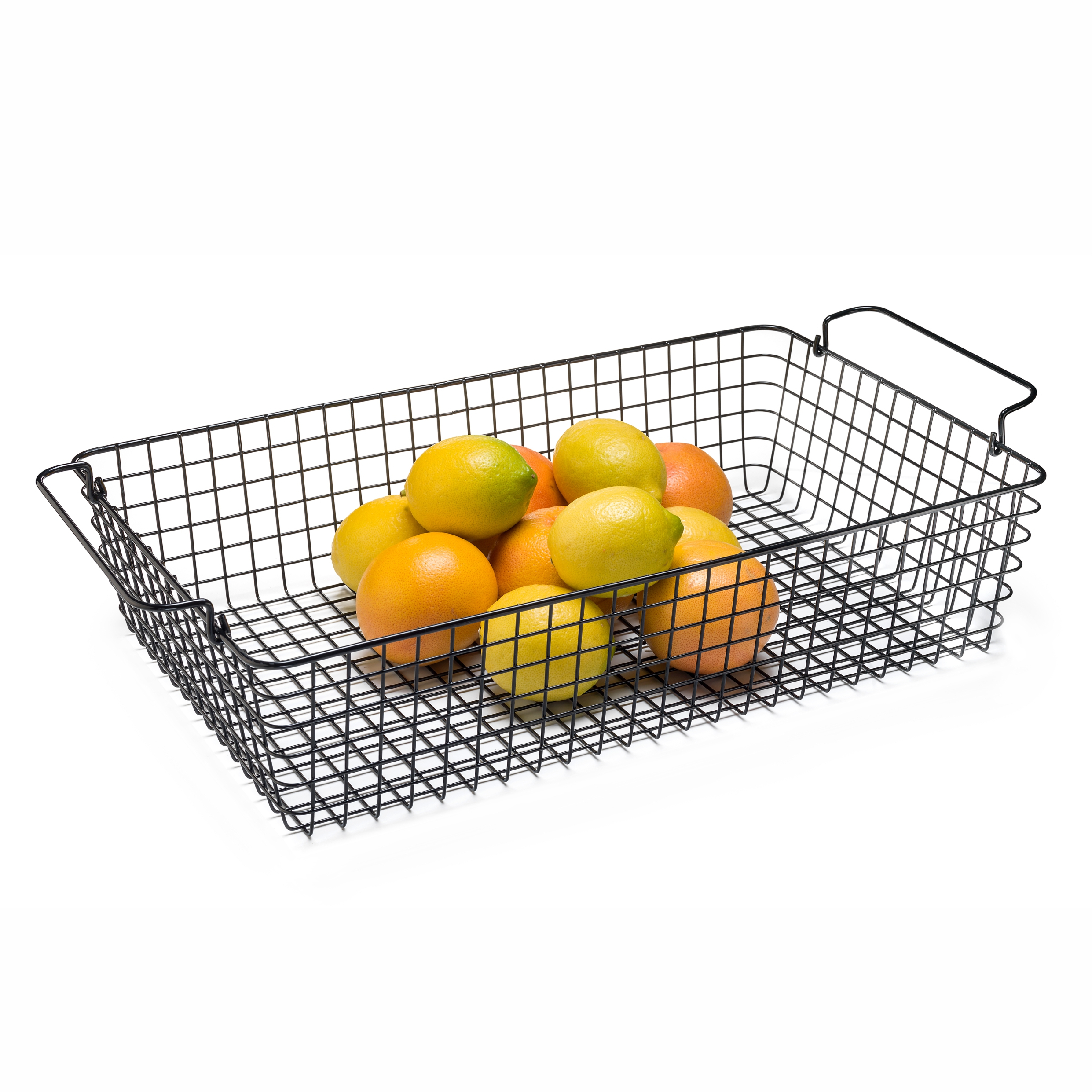 Cesta rejada GN negra de 1/1, ideal para fruta, con medidas de 31x52x12 cm.