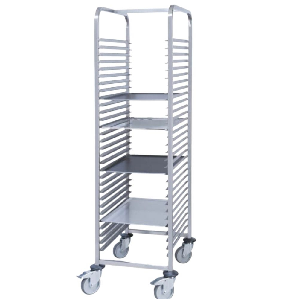 Carro PUJADAS P80850 con 20 niveles y entrada de 400 mm. En acero inoxidable, desmontable y con ruedas. Ideal para hostelería y pastelería.
