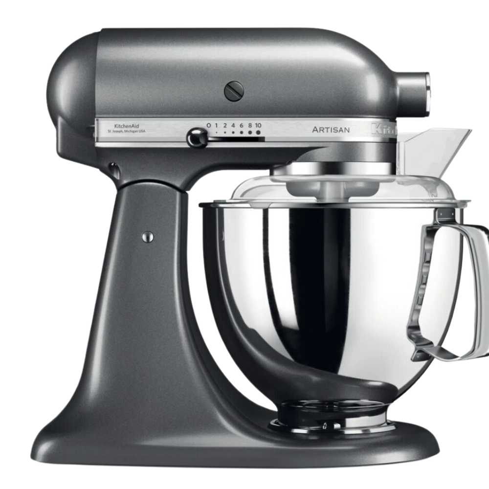 Batidora amasadora KitchenAid de 300 W en gris grafito plateado. Con bol de 4,8 L y 7 accesorios, ideal para panadería, repostería y hostelería.